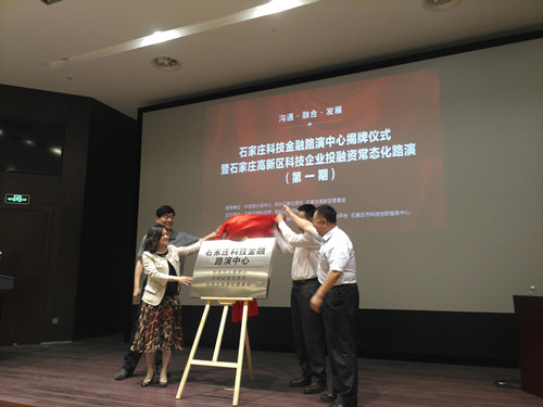 2017年5月24日,由科技部火炬中心、深圳证券交易所、石家庄高新区管委会指导,石家庄市科技局、深圳证券信息有限公司主办,石家庄高新区科技局、中国高新区科技金融信息服务平台、石家庄市科技创新服务中心承办的“石家庄科技金融路演中心揭牌仪式暨石家庄高新区科技企业投融资常态化路演(第一期)”活动在河北举办。石家庄科技金融路演中心将为科技型中小企业提供专业化、定制化、特色化路演服务,帮助河北省科技企业解决融资难题,助力京津冀协同发展。