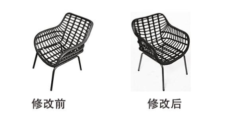 如图10所示“椅子”的外观设计视图,修改后改变了椅子表面的颜色,椅座由红色变为黑色,椅腿由金属灰色变成金色。该产品的外观设计虽然未请求保护色彩,但色彩有了较大改变,属于超范围的修改。
