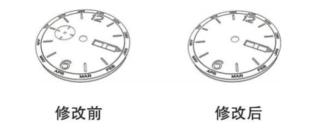 如图17所示“手表表盘的主体”的外观设计视图,虽然虚线部分不属于请求保护的内容,且实线表示的要求保护的外观设计未发生变化,但是修改后虚线表示的其他部分的设计明显不同,属于超范围的修改。